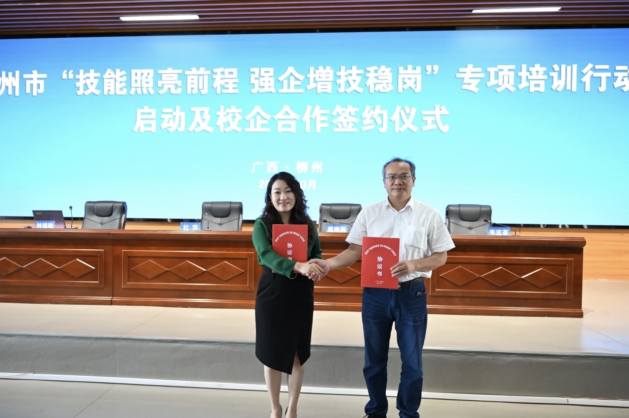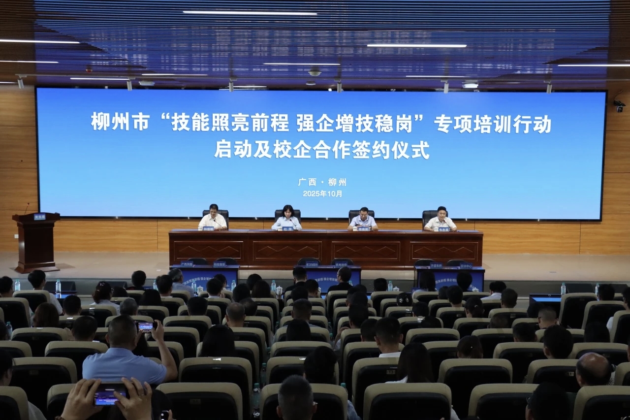 10 月 17 日上午,柳州市“技能照亮前程 强企增技稳岗”专项培训行动启动及校企合作签约仪式,在柳州市职业技能公共实训中心隆重举行。各高等院校、职业院校、技工院校代表与行业龙头企业代表齐聚一堂,现场完成签约仪式,为柳州技能人才培养与产业发展深度融合拉开崭新序幕。