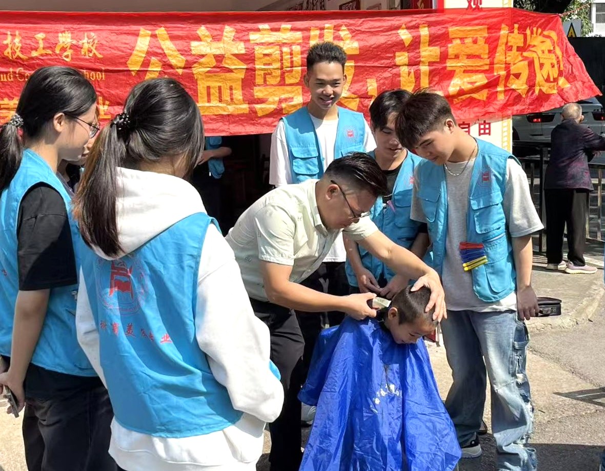 10月26日上午,我校美容美发专业教师蒲天赐带领23美发1班学生,走进三华庄园小区开展“公益义剪”志愿服务,以专业技能为居民提供暖心理发服务。