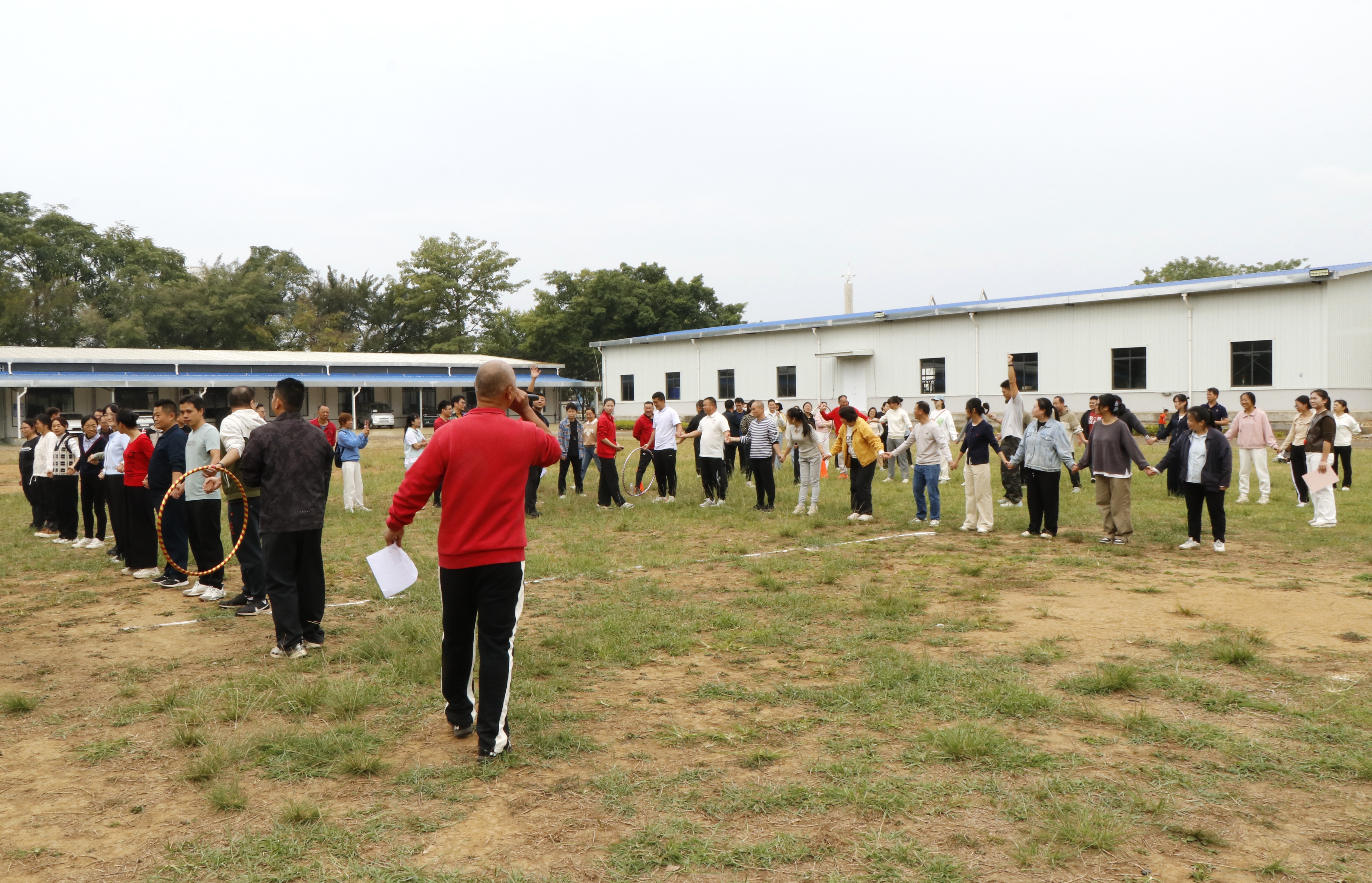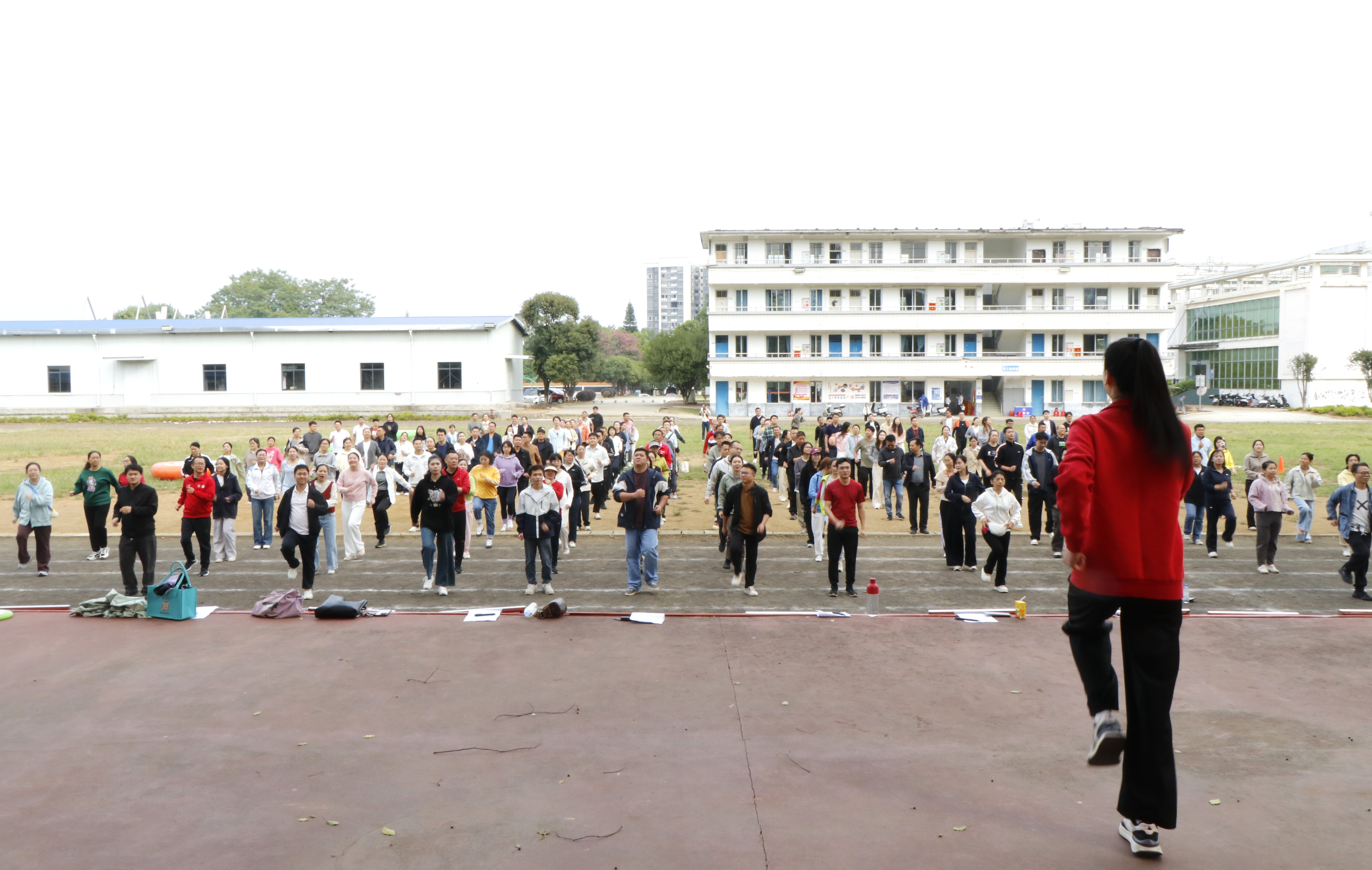 在体育教研室何琳琳老师的带领下,全体教职工进行了集体热身活动。动感的音乐、整齐的动作,瞬间点燃了现场气氛,为接下来的比赛做好了充分准备。