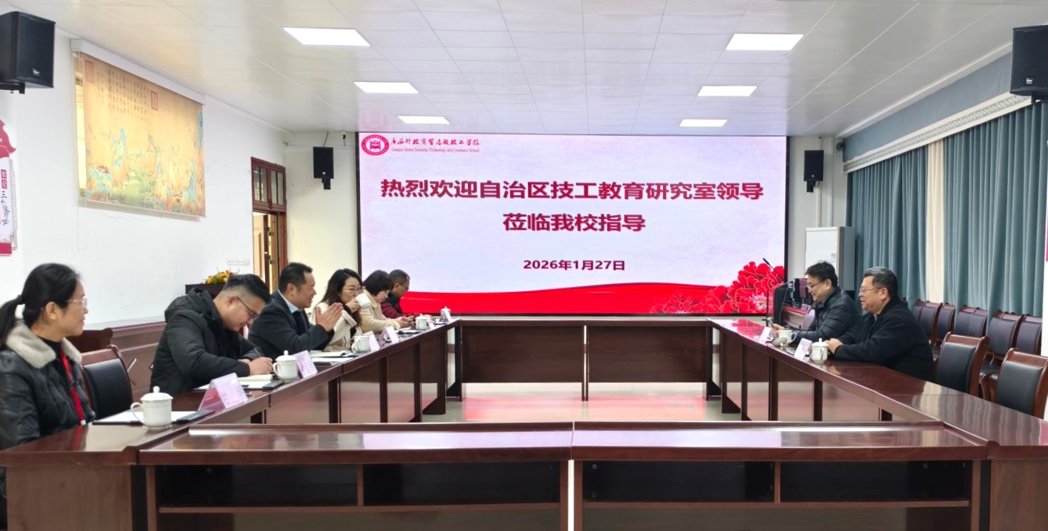 1月27日,自治区技工教育研究室主任刘建成、科长周雪林一行到我校检查指导工作。学校校长曾俊喆,副校长陈煜、甘运刚,教学总监杨凡柳等陪同调研。
